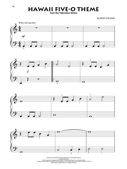 10 songs arranged for beginners with lyrics from these favorite shows: The Addams Family · Arthur · Hawaii Five-O · Jeopardy · Mission: Impossible · Mister Rogers' Neighborhood · NFL on Fox · Outlander · Parks and Recreation · Sesame Street Theme.