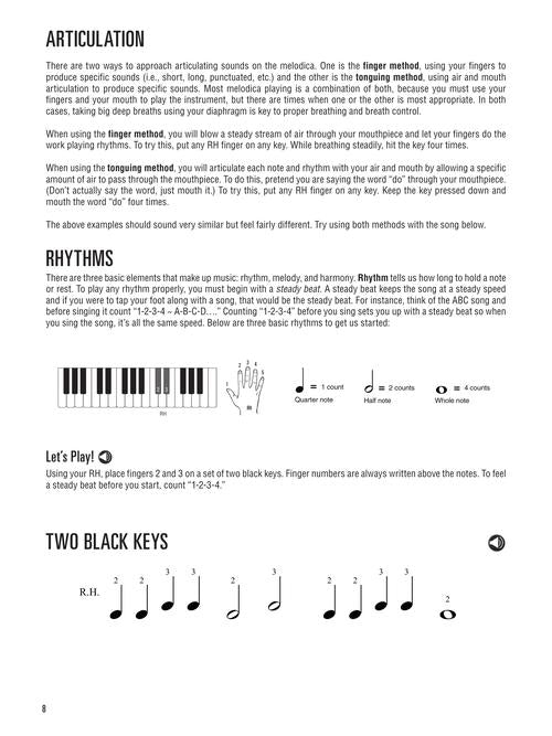 The Hal Leonard Melodica Method is designed for anyone interested in learning the basics of playing the melodica. This easy-to-use beginner's guide serves as an introduction to everything needed to begin playing with proper technique. It's filled with helpful diagrams and photographs and uses folk tunes that students can learn as they work their way through the book. Topics covered include: mouthpiece techniques, breathing, chords, rhythms, improvising, vibrato, trills, and glissando technique. Includes 90 audio tracks with demonstrations of every song in the book!