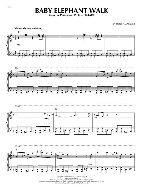 Solo arrangements of more than 30 magnificent Mancini hits! Includes: Baby Elephant Walk · Breakfast at Tiffany's · Charade · Crazy World · Days of Wine and Roses · How Soon · Moon River · Newhart Main Title Theme · Peter Gunn · The Pink Panther · A Shot in the Dark · The Thorn Birds (Main Theme) · Two for the Road · Whistling Away the Dark · and more.