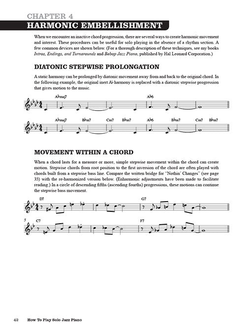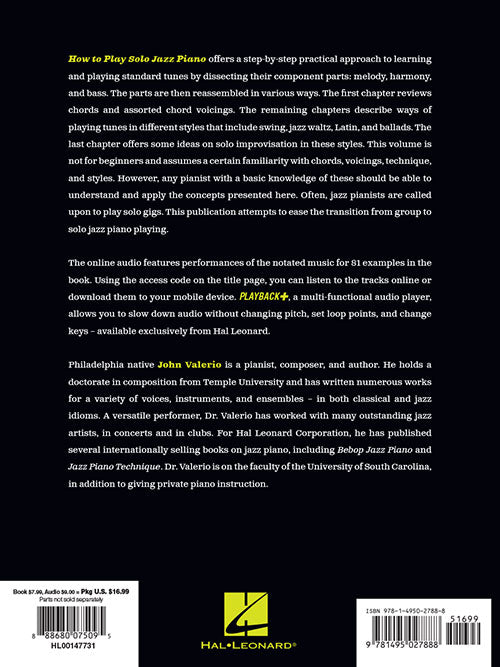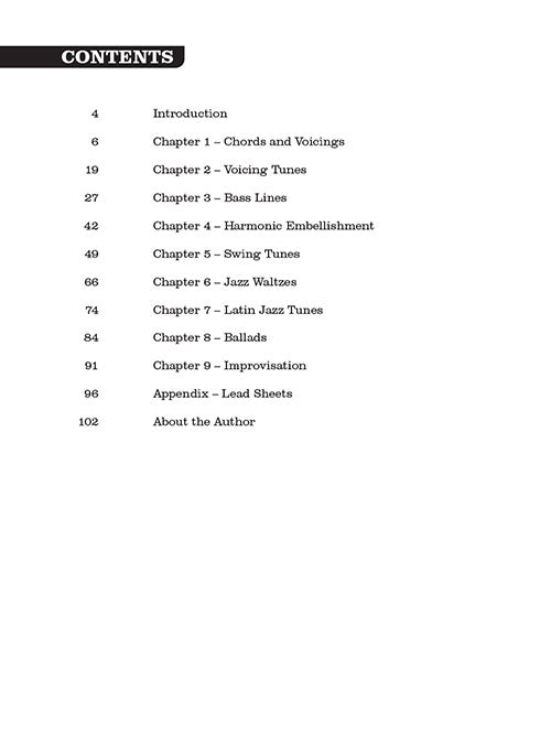 Often, jazz pianists are called upon to play solo gigs. This book attempts to ease the transition from group to solo jazz piano playing with a step-by-step practical appraoch to learning and playing standard tunes by dissecting their component parts; melody, harmony and bass. The parts are then reassembled in various ways. Chapters include: chords & voicings · bass lines · swing tunes · ballads · improvisation. Audio demonstration tracks are provided for download or streaming online with a unique access code included in the book.