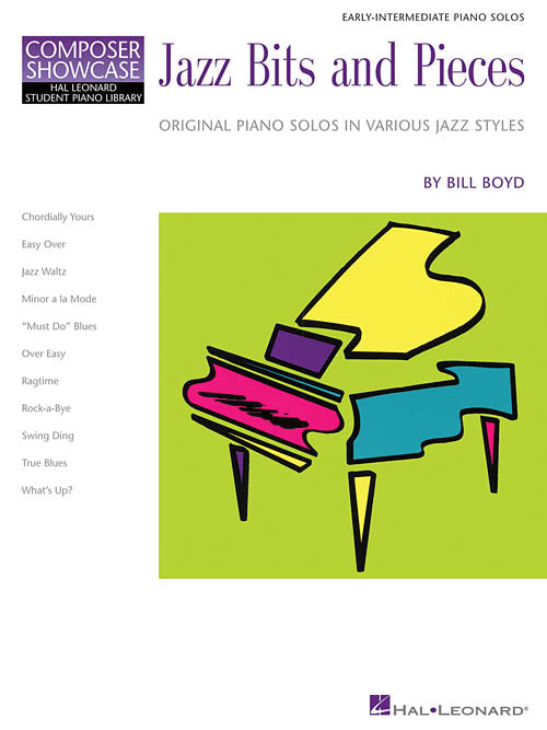 Bill Boyd's masterful craftsmanship is readily apparent in these 11 pieces. Slightly easier than his intermediate-level books, Jazz Delights and Jazz Fest, this solo collection for the early-intermediate pianist explores a variety of jazz styles from blues to swing. Bill's original solos lay out essential style elements in pieces that fit a developing pianist's technique easily, providing students with ample opportunity to develop finesse through enticing melodies and subtle harmonies. An imaginative collection of pieces, sure to please any age. Keys: full range; Reading: full range of keyboard; syncopation; 2 - 4 page solos; 24 pages.