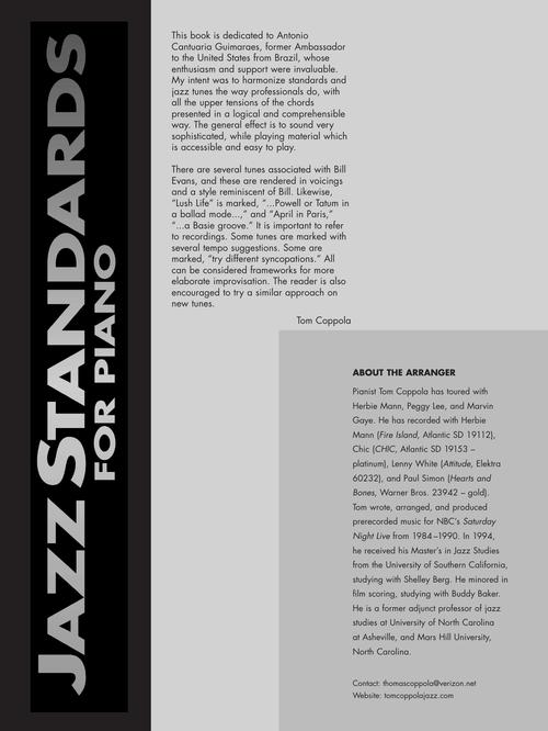 Jazz Standards for Piano Solo is arranged by Tom Coppola, who has toured with the likes of Peggy Lee and Marvin Gaye, recorded with Herbie Mann and Paul Simon, and wrote, arranged and produced music for Saturday Night Live from 1984-1990.