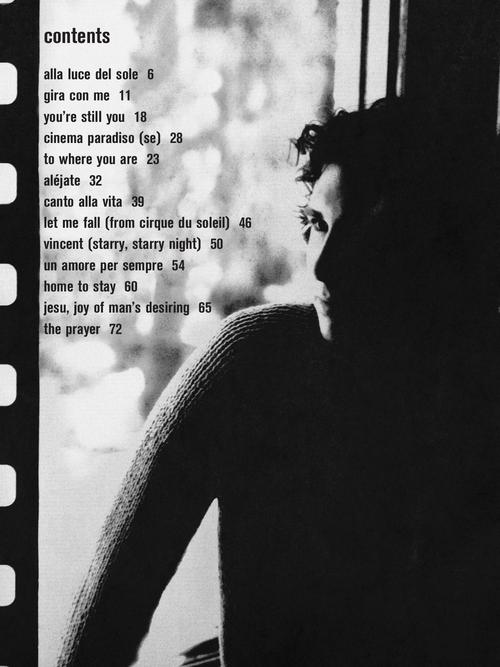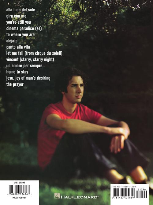 Easy arrangements of 13 of the best-loved songs from Groban's first three studio albums, including: Alejate · Alla Luce Del Sole · Cinema Paradiso · Jesu, Joy of Man's Desiring · The Prayer · To Where You Are · Un Amore Per Sempre · Vincent (Starry Starry Night) · and more.