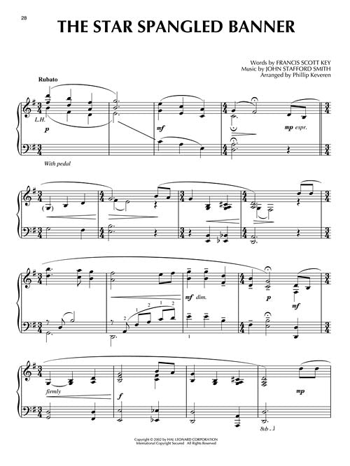 Features Phillip Keveren's great solo arrangements of 14 favorites celebrating the land of the free, including: America, the Beautiful · Anchors Aweigh · Battle Hymn of the Republic · God Bless Our Native Land · My Country, 'Tis of Thee · Semper Fidelis · Stars and Stripes Forever · Yankee Doodle Boy · You're a Grand Old Flag · and more.