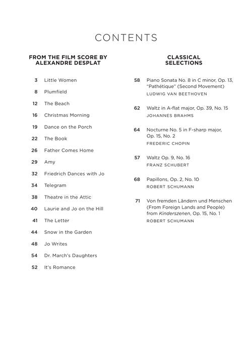 This songbook presents 17 selections from Alexandre Desplat's gorgeous Oscar Award-nominated score for the 2019 movie as well as six classical solos that were featured in the film.