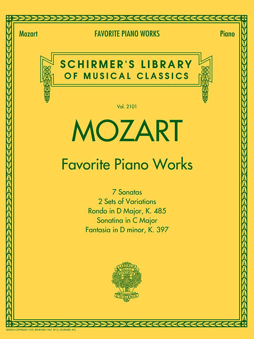 12 well-known pieces, including the most often played Sonatas, Rondo in D Major K. 485, Sonatina in C Major, and Twelve Variations on Ah, vous dirai-je, Maman. Contents: Rondo in D Major, K. 485 · Piano Sonata in F Major, K. 332 · Piano Sonata in C Major, K. 545 · Piano Sonata in B-flat Major, K. 333 · Sonatina in C Major · Piano Sonata in C Major, K. 309 · Fantasia in D minor, K. 397 · Piano Sonata in A minor, K. 310 · Piano Sonata in A Major, K. 331 · Fantasia and Sonata in C minor, K. 475, 457 · Eight Variations on Laat ons juichen by Christian Ernst Graaf, K. 24 · Twelve Variations on Ah, vous dirai-je Maman, K. 265
