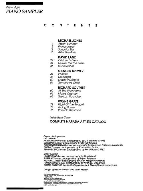 Piano solo arrangements of 17 songs from the leading new age label: Cristofori's Dream · Flight of the Seagull · Heart Sounds · Mary's Question · Pianoscapes · Rain on the Pond.
