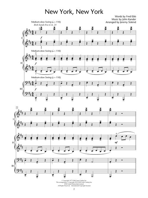 This Kander & Ebb classic heralding the United States' largest city is arranged here for a trio of pianists at one piano by Jeremy Siskind at an intermediate level.