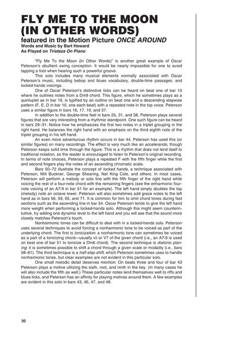 Study and play these enduring jazz standards as performed by one of the greatest piano players of all time: All of Me · Between the Devil and the Deep Blue Sea · Falling in Love with Love · Fly Me to the Moon · Georgia on My Mind · I Love You · In a Mellow Tone · It's All Right with Me · It's Only a Paper Moon · My Heart Stood Still · On the Sunny Side of the Street · When Lights Are Low. The book includes instruction and transcriptions, and the online audio files include demos of each piece. Audio is accessed online using the unique code inside the book and can be streamed or downloaded. The audio files include PLAYBACK+, a multi-functional audio player that allows you to slow down audio without changing pitch, set loop points, change keys, and pan left or right.