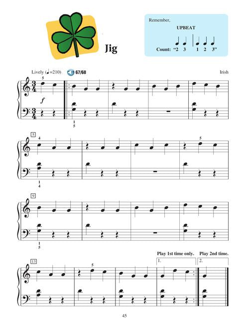 Book 2 opens with a new My Own Song improvisation on CDEFG. Unit 1 introduces phrasing and legato touch, and presents harmonic 2nds and 3rds with staccato touch. The following two units are dedicated to the introduction of 4ths and 5ths. In Unit 3 sharps are introduced in a diatonic setting starting on D, and flats are introduced as blues notes. Most pieces in the second half of Book 2 coordinate hands playing together. This book works very well for transfer students. This version includes access to beautifully recorded audio tracks for download or streaming.