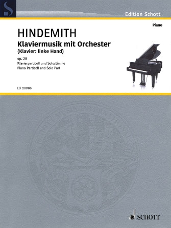 This concerto for the left hand by Paul Hindemith was not premiered until more than eighty years after its creation - it took that long for the musical world and researchers to get access to it. Hindemith composed the piano piece in 1923. The pianist Paul Wittgenstein who had lost his right arm in the First World War offered him (as well as Korngold, Strauss, Franz Schmidt, Britten, Prokofiev and Ravel) a well paid commission. But he did not like the piece very much, probably because he thought it was too modern. As a consequence, it disappeared. It did not reappear until the 21st century and was finally premiered in 2004. In addition to the study score (ED 9608) Schott Music now also presents Hindemith's masterpiece in a version for two pianos. Contents: 1. Einleitung · 2. Sehr lebhafte Halbe · 3. Trio. Basso ostinato · 4. Finale. 2 copies needed for performance.