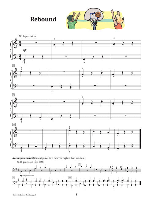 Piano Technique Book 3 builds upon skills learned in Books 1 and 2, adding sixMajor and minor five-finger positions, extended hand positions, and introducing moving from one position to another. Warm-Ups and Musical Fitness Plans introduce each new skill, and Etudes follow that use the skill musically. The exercises in this book are carefully correlated to the music in Piano Lessons Book 3. Each Warm-Up and Etude in the book has its own original accompaniment, available on a separate CD or GM disk.