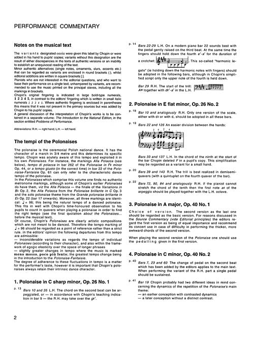 Polonaises Series A: Ops. 26, 40, 44, 53, 61 Chopin National Edition 6A, Volume VI Softcover Contains Polonaises from Op. 26, Op. 40 (including two versions of Op. 40, No. 1), Op. 44, Op. 53, and Op. 61. The Polonaises are inspired by Polish traditional dance, and they echo the Polish struggle for freedom. See also 00132302 for the Polonaises published posthumously. The National Edition of the Works of Fryderyk Chopin Published by PWM Exclusively Distributed by Hal Leonard Corporation Co-Editors Jan Ekier and Pawel Kaminski The objective of the National Edition is to present Chopin's complete output in its authentic form, based on the entire body of available sources. Sources were analyzed with up-to-date scientific and musicological methodology. The National Edition was based on sources originated from the composer, mainly autographs, copies of autographs and first editions with the composer's corrections, and pupils' copies with Chopin's annotations. In cases when original sources were lacking, the closest possible materials were used. Collecting the source materials was a laborious task which took years of effort. The characteristics of sources, the links and discrepancies between them as well as the reasons for particular editorial decisions are discussed in the Source Commentary in each volume. The Performance Commentary appended to each volume includes: the realization of ornaments, comments on pedal markings (the original markings sometimes are inadequate, due to the difference in sound between pianos used in Chopin`s times and modern pianos), suggestions as to the harmonic legato (a performance technique often used by Chopin and now forgotten). About the National Edition (http://serwer1374796.home.pl/wp-content/uploads/2013/05/o_wydaniu_narodowym.pdftarget=_blank) Full Introduction to the National Edition of the Works of Fryderyk Chopin (http://serwer1374796.home.pl/wp-content/uploads/2013/05/introduction_to_NE.pdftarget=_blank) Inventory # : 00132300 UPC: 884088971342 ISBN: 1480390771 Width: 9.25" Length: 12" Height: 0.271" Product Weight: 0.9 lbs. Number of Pages: 112