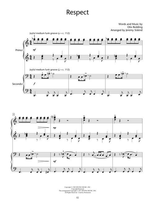 Eight fantastic duet arrangements of classic and current pop hits! Titles: Can't Feel My Face (The Weeknd) · Hallelujah, I Love Her So (Ray Charles) · Halo (Beyonce) · I Got You (I Feel Good) (James Brown) · I Want You Back (Jackson 5) · Isn't She Lovely (Stevie Wonder) · Just the Way You Are (Bruno Mars) · Respect (Aretha Franklin).