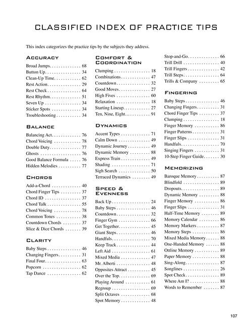 In Practicing the Piano, Nancy O'Neill Breth offers a broad selection of practice tips with musical examples to help students of all ages find imaginative solutions to pianistic problems. The book explores how to: organize practice time; map music before practicing to uncover the musical terrain that lies ahead; use practice time effectively from the first reading through performance; develop fluency with accuracy; polish and memorize a piece; and lay the foundation for confident performance. Practicing the Piano is a handbook of practice techniques. Teachers can use it to reinforce and augment their own ideas on practicing. Parents will find a wealth of ideas for guiding their children's practice sessions. Students young and old will discover how to make each practice session count. Using the book's wide range of practice tips not only improves a pianist's skills, but also adds adventure and enjoyment to the process of mastering a piece.