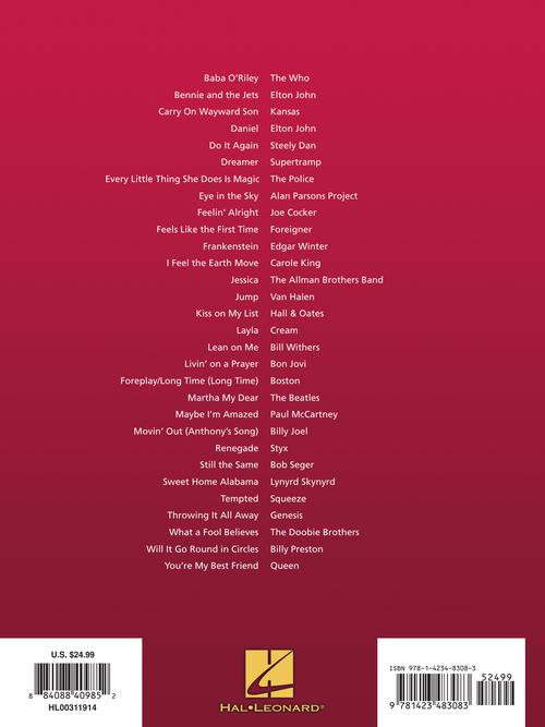 30 smash hits transcribed precisely as they were played. Includes: Baba O'Riley (The Who) · Bennie and the Jets (Elton John) · Carry On Wayward Son (Kansas) · Dreamer (Supertramp) · Every Little Thing She Does Is Magic (The Police) · Eye in the Sky (Alan Parsons Project) · I Feel the Earth Move (Carole King) · Jump (Van Halen) · Layla (Derek and the Dominos) · Lean on Me (Bill Withers) · Livin' on a Prayer (Bon Jovi) · Maybe I'm Amazed (Paul McCartney) · Movin' Out (Anthony's Song) (Billy Joel) · Renegade (Styx) · Sweet Home Alabama (Lynyrd Skynyrd) · Tempted (Squeeze) · What a Fool Believes (The Doobie Brothers) · You're My Best Friend (Queen) · and more.