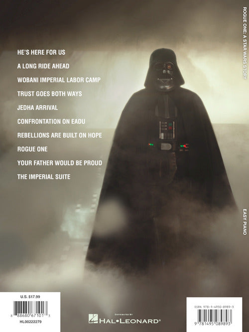 The latest installment in the Star Wars franchise was a hit in box offices worldwide and we are pleased to present this collection of easy piano arrangements from the memorable soundtrack: He's Here for Us · A Long Ride Ahead · Wobani Imperial Labor Camp · Trust Goes Both Ways · Jedha Arrival · Confrontation on Eadu · Rebellions Are Built on Hope · Rogue One · Your Father Would Be Proud · The Imperial Suite. Includes 8 pages of color artwork from the film!