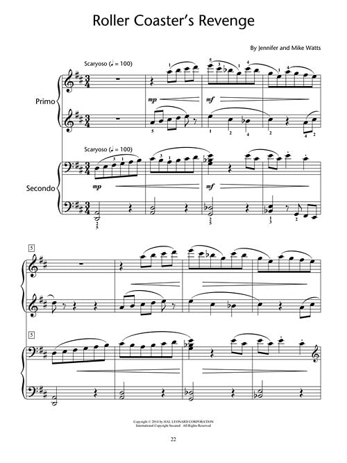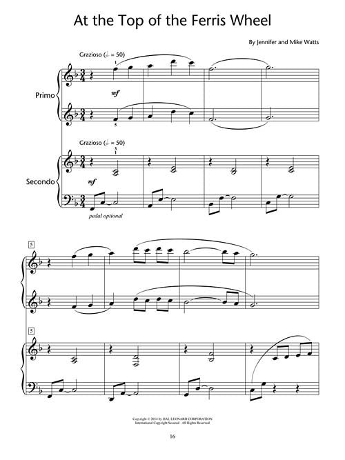 Students will want to play every duet in this exciting intermediate level collection! From roller coasters to water slides, the musical variety of each amusement park scene brings out students' natural enthusiasm and ensures their performance will be a rip-roaring success at the next recital! Duets include: Are We There Yet? · At the Top of the Ferris Wheel · Don't Look Down! · Jungle Grooveland · On the Carousel · Roller Coaster's Revenge · The Water Slide · Which Ride to Choose?