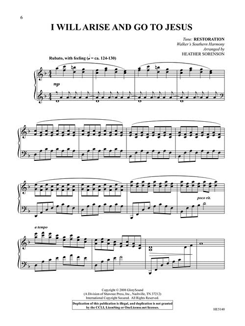 Beautiful arrangements for offertories, communion, and other special events. Includes: I Will Arise and Go to Jesus · Be Thou My Vision · This Is My Father's World · At Day's End · Shall We Gather at the River · A Reflection on the Cross · All Through the Night · Be Still My Soul · Nearer, My God, to Thee · Turn Your Eyes Upon Jesus · 'Til We Meet Again