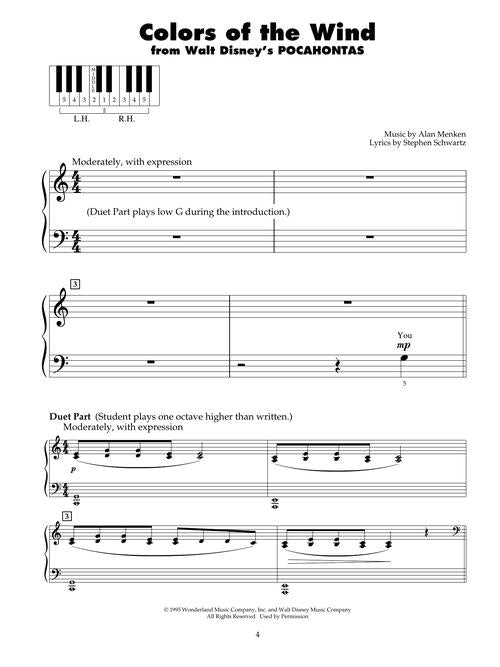 This terrific collection features five-finger piano arrangements of seven songs sung by Disney heroines. Includes: Colors of the Wind · A Dream Is a Wish Your Heart Makes · I Wonder · Just Around the Riverbend · Part of Your World · Something There · A Whole New World.