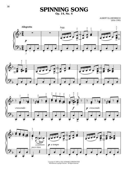 Play 50 favorites by Bach, Beethoven, Mozart, and others that are perfect for beginners. Contents ANONYMOUS: Minuet in G Major, BWV Appendix 116; Minuet in C minor, BWV Appendix 121; Musette in D Major, BWV Appendix 126; Minuet in D minor, BWV Appendix 132 · CPE BACH: March in D Major, BWV Appendix 122 · JS BACH: Prelude in C Major from The Well-Tempered Clavier, Book 1, BWV 846; Prelude in C Major, BWV 939 · BARTÓK: Short and Long Legato from The First Term at the Piano; Walking from The First Term at the Piano · BEETHOVEN: German Dance in C Major, WoO 8, No. 1; Ländler in D Major, WoO 11, No. 4; Ecossaise in G Major, WoO 23; Ecossaise in E-flat Major, WoO 86 · BLOW: Courante in C Major · BURGMÜLLER: Arabesque from 25 Progressive Studies, Op. 100, No. 2 · CLEMENTI: Spiritoso from Sonatina in C Major Op. 36, No. 1; Arietta in C Major from An Introduction to the Art of Playing on the Pianoforte, Op. 42 · DUNCOMBE: Sonatina in C Major; The Chase · ELLMENREICH: Spinning Song, Op. 14, No. 4 · FRESCOBALDI: Gagliarda in G Minor · GURLITT: Morning Prayer from Albumleaves for the Young, Op. 101, No. 2; Waltz in C Major from Albumleaves for the Young, Op. 101, No. 11; To School from The First Lessons, Op. 117, No. 14; Cradle Song from The First Lessons, Op. 117, No. 17 · HANDEL: Impertinence (Bourrée), HWV 494; Minuet in F Major; Rigaudon in G Major · HAYDN: Country Dance in C Major; Dance in G Major · MOZART: Minuet in G Major, K. 1e/1f; Minuet in F Major, K. 2; Allegro in B-flat Major, K. 3; Minuet in C Major, K. 6; Air in A-flat Major, K. Anh. 109b, No. 8 (15ff) · PETZOLD: Minuet in G Major, BWV Appendix 114; Minuet in G minor, BWV Appendix 115 · RAMEAU: Menuet en Rondeau · A SCARLATTI: Aria in D minor · D SCARLATTI: Sonata in C Major, L. 217 (K. 73b, P. 80) · SCHUBERT: Waltz in A-flat Major, Op. 9, No. 12 (D. 365) · SCHUMANN: Melody from Album for the Young, Op. 68, No. 1; Soldier's March from Album for the Young, Op. 68, No. 2; Little Piece from Album for the Young, Op. 68, No. 5 · TCHAIKOVSKY: The Doll's Burial from Album for the Young, Op. 39, No. 7; Russian Song from Album for the Young, Op. 39, No. 11 · TELEMANN: Dance in G Major · TÜRK: Little Rondo in F Major · WILTON: Amabile from Sonatina in C Major; Minuet from Sonatina in C Major