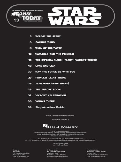 Now the Force can be with even beginners! Here are 12 favorite themes from the classic film, all in our famous notation. Includes: Cantina Band · Han Solo and the Princess · The Imperial March (Darth Vader's Theme) · May the Force Be with You · Princess Leia's Theme · Star Wars (Main Theme) · The Throne Room · Victory Celebration · Yoda's Theme · and more.