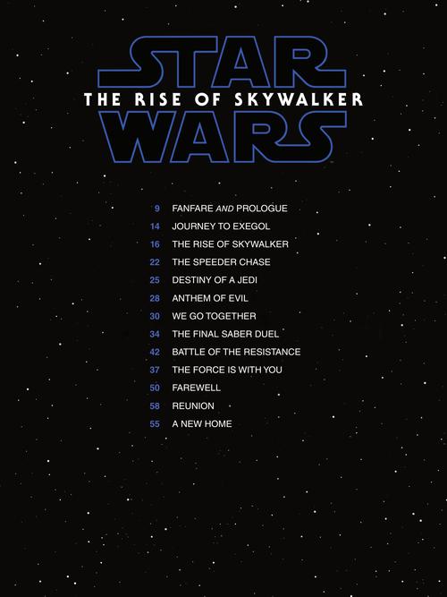 The Rise of Skywalker marks the last Star Wars film for which John Williams will compose the score. This collection features 13 Williams-approved easy piano solo arrangements from the soundtrack, including: Anthem of Evil · Battle of the Resistance · Destiny of a Jedi · Fanfare and Prologue · Farewell · The Final Saber Duel · The Force Is with You · Journey to Exegol · A New Home · Reunion · The Rise of Skywalker · The Speeder Chase · We Go Together. This souvenir folio also includes eight pages of color artwork from the movie.