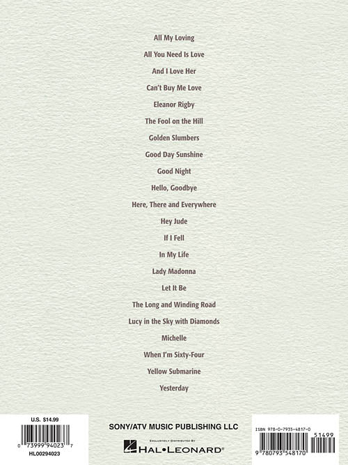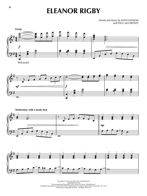 Beautiful piano solo arrangements of 22 Beatles tunes, including: All My Loving · Eleanor Rigby · The Fool on the Hill · Here, There and Everywhere · Hey Jude · If I Fell · In My Life · Lady Madonna · Let It Be · Michelle · Yesterday · and more.