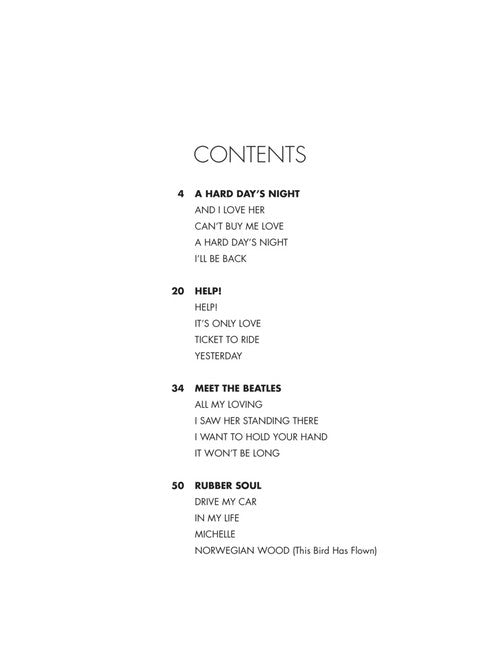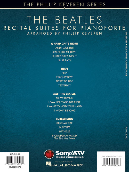 Four recital suites arranged by Phillip Keveren featuring four familiar songs of the Beatles in each suite, perfect for recitals! Includes: A Hard Day's Night (with: And I Love Her; Can't Buy Me Love; I'll Be Back) · Help! (with: It's Only Love; Ticket to Ride; Yesterday) · Meet the Beatles (with: All My Loving; I Saw Her Standing There; I Want to Hold Your Hand; It Won't Be Long) · and Rubber Soul (with: Drive My Car; In My Life; Michelle; and Norwegian Wood).