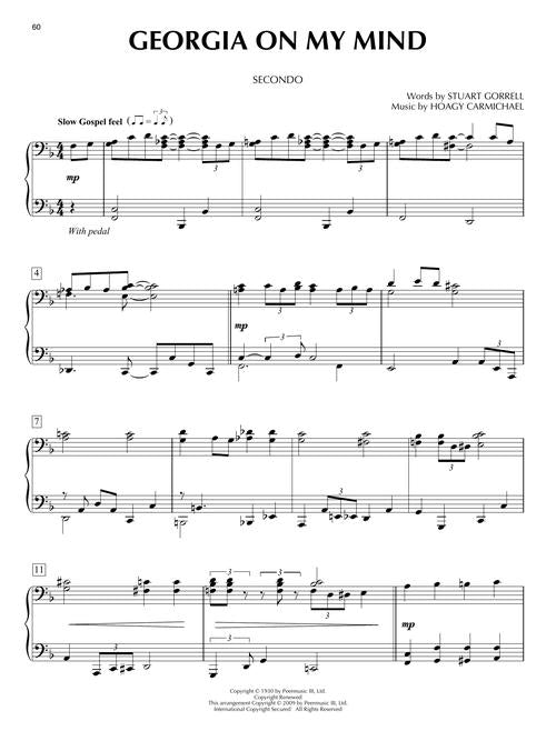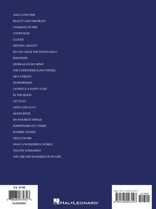 24 great piano duet arrangements! Includes: Beauty and the Beast · Clocks · Edelweiss · Georgia on My Mind · He's a Pirate · Let It Go · Linus and Lucy · Moon River · Yellow Submarine · You are the Sunshine of My Life · and more! Format: Primo and Secondo on opposing pages.