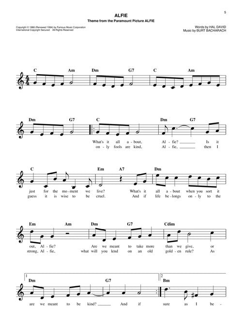 This follow-up to the popular Your First Fake Book (00240112) includes over 100 more great songs that even beginning-level musicians can enjoy playing! It features the same larger notation with simplified harmonies and melodies, all songs in the key of C, and introductions for each song, to add a more finished sound to the arrangements. The songs are in many musical styles and include: Alfie · All I Ask of You · All My Loving · Always on My Mind · Autumn in New York · Blue Skies · Cabaret · Crazy · Fields of Gold · Go the Distance · God Bless' the Child · Great Balls of Fire · Hey, Good Lookin' · How Deep Is Your Love · I'll Be There · If · Imagine · Jailhouse Rock · Kansas City · Memory · Michelle · Misty · My Girl · My Heart Will Go On · People · Stand by Me · Star Dust · Tangerine · Tears in Heaven · Tennessee Waltz · Unchained Melody · What a Wonderful World · What'll I Do? · You've Got a Friend · and more.