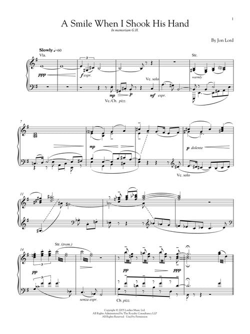 The Jon Lord Collection is a new volume of vocal scores and piano arrangements of some of Jon Lord's most famous songs and instrumental pieces. Jon's genius for improvisation meant that his own performances were constantly evolving, and with most of these compositions he never got around to actually notating definitive versions of the scores. His long-time friend and musical collaborator Paul Mann has painstakingly combined all of Jon's extant manuscript material with new transcriptions from the original recordings to arrive at the first-ever authoritative published versions of eleven essential pieces. Included are some of Jon's most celebrated solo songs, including those written in collaboration with Sam Brown (Wait a While, One from the Meadow, The Sun Will Shine Again), together with a more recent collaboration with Steve Balsamo (All Those Years Ago). The collection would not be complete without Pictured Within, composed to lyrics by the composer himself, and made famous by the incomparable performances of Miller Anderson. Completing the collection are instrumental pieces from the 2004 album Beyond the Notes, including Jon's meditation on his departure from Deep Purple De Profundis, the Brubeck-inspired Cologne Again, the gentle but subtly complex Miles Away, (which was to form the basis of the slow movement of his piano concerto Boom of the Tingling Strings) and the wildly virtuosic Telemann Experiment which, in typical Jon style, combines elements of rock and blues with the music borrowed from a suite by an early 18th century German Baroque composer. Jon Lord's genre-defying music is presented here for the first time in a form which makes it readily accessible to musicians and music-lovers alike.
