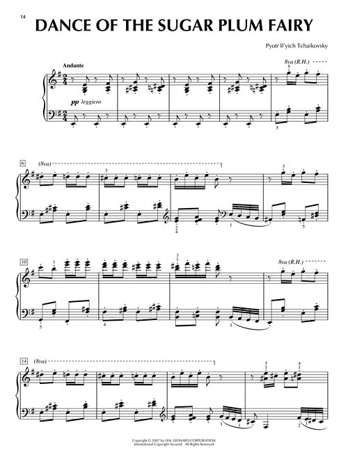 8 wonderful piano solo arrangements of one of the world's most recognizable works. Featuring: Dance of the Sugar Plum Fairy · March · Russian Dance (Trepak) · Waltz of the Flowers · and more.