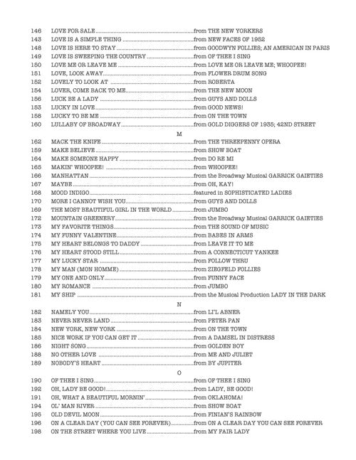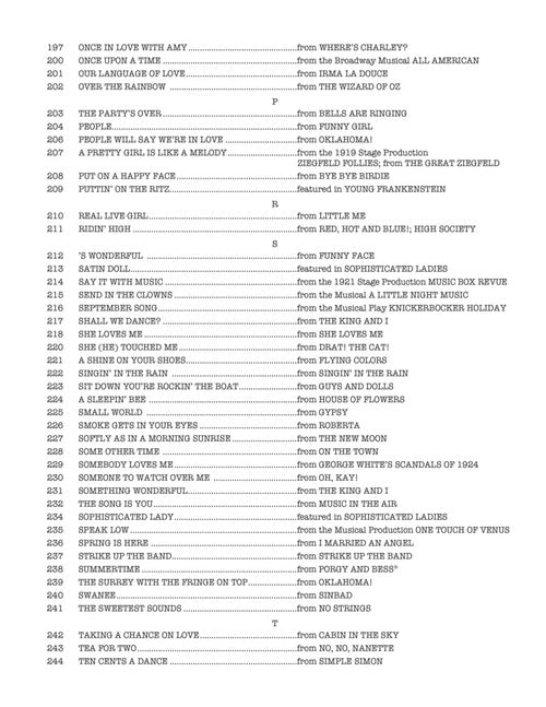 The Real Broadway Book C Instruments Publisher: Hal Leonard Category: Keyboard & Piano/Vocal/Guitar Series: Fake Book Format: Softcover The Real Books feature hundreds of time-tested songs in accurate arrangements in easy-to-read, hand-written notation with comb-binding. This volume of songs from the Great White Way includes 149 classics: As Long As He Needs Me · Bewitched · Blue Skies · Caravan · Day by Day · Ev'ry Time We Say Goodbye · Falling in Love with Love · Give My Regards to Broadway · Hello, Dolly! · I Could Have Danced All Night · I've Never Been in Love Before · If I Were a Bell · It's De-Lovely · The Joint Is Jumpin' · The Lady Is a Tramp · Makin' Whoopee! · My Favorite Things · Oh, What a Beautiful Mornin' · Once upon a Time · People · Put on a Happy Face · Sit down You're Rockin' the Boat · Till There Was You · Try to Remember · Unexpected Song · What I Did for Love · Young and Foolish · and more. Looking for a particular song? Check out the Real Book Songfinder (http://www.halleonard.com/bin/MiscRealbksongfind2016.pdf) here. Inventory # : 00240223 UPC: 73999978216 ISBN: 634060457 Width: 8.5" Length: 11" Height: 0.665" Product Weight: 1.7 lbs. Number of Pages: 288