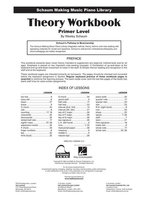 Use from the very first lesson! Complete and thorough presentation of music theory. Written assignments reinforced with keyboard work. Helps improve speed and accuracy of note reading.