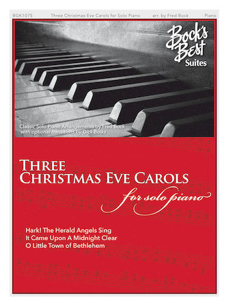 Fred Bock's legacy of piano arrangements is a treasure that remains rich with beauty and usefulness. Dick Bolks, Fred's long-time friend and colleague, has selected three of Fred's carol arrangements that are suitable for a Christmas Eve service and created exquisite transitions that combine them into a suite. Each piece can still be performed alone as the transitions are optional, so the trilogy's usefulness is enhanced for concert or worship. Medium in diffculty.