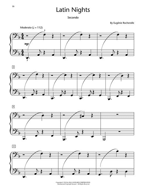Tour for Two HLSPL Composer Showcase NFMC 2020-2024 Selection 1 Piano, 4 Hands Publisher: Hal Leonard Category: Educational Keyboard Series: Educational Piano Library Format: Softcover Take a tour around the world with these fun and stylistic piano duets written for students at the late-elementary level. The sheer variety combined with the original compositional style of Eugénie Rocherolle make this an attractive collection suitable for recitals or auditions. Pieces include: Desert Caravan · Highland Fling · Latin Nights · Rickshaw Ride · Russian Dance · Swingtime. To see other NFMC selections, click here (http://www.halleonard.com/promo/promo.do?promotion=183) . Inventory # : 00296832 UPC: 884088521752 ISBN: 1423497023 Width: 9" Length: 12" Height: 0.173" Product Weight: 0.4 lbs. Number of Pages: 40