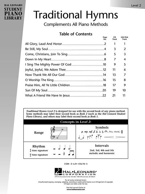 Traditional Hymns Level 2 Nfmc 2020 2024 Selection Book Only Hal Leonard Stude