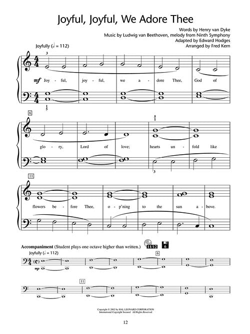 11 songs, including: All Glory, Laud and Honor · Be Still, My Soul · Come, Christians, Join to Sing · Down in My Heart · I Sing the Mighty Power of God · Joyful, Joyful, We Adore Thee · Now Thank We All Our God · O Worship the King · Praise Him, All Ye Little Children · Sun of My Soul · What a Friend We Have in Jesus. Download a complimentary MIDI accompaniment file for Down In My Heart.