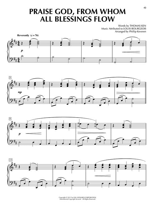 Features Phillip's remarkable solo arrangements of 15 favorite hymns: Abide with Me · All Creatures of Our God and King · Be Thou My Vision · I Sing the Mighty Power of God · The Lord's My Shepherd, I'll Not Want · A Mighty Fortress Is Our God · O Worship the King · Praise to the Lord, The Almighty · We Gather Together · and more.