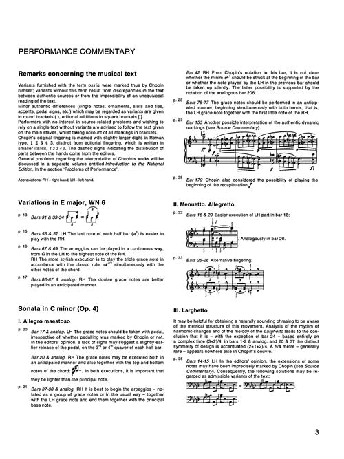 Variations in E and Sonata in C Minor Chopin National Edition 28B, Volume IV Softcover Includes these posthumously published works: Sonata in C minor, Op. 4; Variations in E Major. The National Edition of the Works of Fryderyk Chopin Published by PWM Exclusively Distributed by Hal Leonard Corporation Co-Editors Jan Ekier and Pawel Kaminski The objective of the National Edition is to present Chopin's complete output in its authentic form, based on the entire body of available sources. Sources were analyzed with up-to-date scientific and musicological methodology. The National Edition was based on sources originated from the composer, mainly autographs, copies of autographs and first editions with the composer's corrections, and pupils' copies with Chopin's annotations. In cases when original sources were lacking, the closest possible materials were used. Collecting the source materials was a laborious task which took years of effort. The characteristics of sources, the links and discrepancies between them as well as the reasons for particular editorial decisions are discussed in the Source Commentary in each volume. The Performance Commentary appended to each volume includes: the realization of ornaments, comments on pedal markings (the original markings sometimes are inadequate, due to the difference in sound between pianos used in Chopin`s times and modern pianos), suggestions as to the harmonic legato (a performance technique often used by Chopin and now forgotten). About the National Edition (http://serwer1374796.home.pl/wp-content/uploads/2013/05/o_wydaniu_narodowym.pdftarget=_blank) Full Introduction to the Polish National Edition of the Works of Fryderyk Chopin (http://serwer1374796.home.pl/wp-content/uploads/2013/05/introduction_to_NE.pdftarget=_blank) Inventory # : 00132354 UPC: 884088971885 ISBN: 1480390895 Width: 9.25" Length: 12" Height: 0.218" Product Weight: 0.6 lbs. Number of Pages: 72