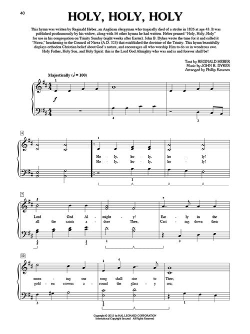 52 hymns that will keep you playing all year long! Each song also includes a brief history by Lindsay Rickard. Hymns include: Abide with Me · All Creatures of Our God and King · Amazing Grace · Be Thou My Vision · Blessed Assurance · Crown Him with Many Crowns · Holy, Holy, Holy · How Firm a Foundation · I Surrender All · It Is Well with My Soul · Jesus Paid It All · Just As I Am · A Mighty Fortress Is Our God · Nearer, My God, to Thee · O Worship the King · The Old Rugged Cross · Savior, like a Shepherd Lead Us · Silent Night · 'Tis So Sweet to Trust in Jesus · We Gather Together · Were You There? · When I Survey the Wondrous Cross · and more.