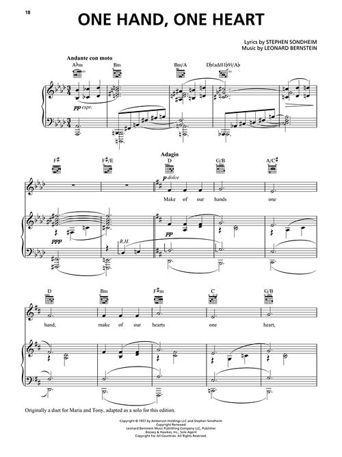 West Side Story Piano Play-Along Volume 130 Publisher: Hal Leonard Category: Keyboard & Piano/Vocal/Guitar Series: Piano Play-Along Format: Softcover Audio Online Your favorite sheet music will come to life with the innovative Piano Play-Along series! With these book/audio collections, piano and keyboard players will be able to practice and perform with professional-sounding accompaniments. Containing cream-of-the-crop songs, the books feature new engravings, with a separate vocal staff, plus guitar frames, so players and their friends can sing or strum along. The online audio features two tracks for each tune: a full performance for listening, and a separate backing track that lets players take the lead on keyboard. The high-quality, sound-alike accompaniments exactly match the printed music. This volume includes 8 songs, including: America · Cool · I Feel Pretty · Maria · One Hand, One Heart · Something's Coming · Somewhere · Tonight · Online audio is accessed at halleonard.com/mylibrary (http://www.halleonard.com/mylibrary) Inventory # : 00130738 UPC: 888680022549 ISBN: 1480396745 Width: 9" Length: 12" Height: 0.136" Product Weight: 0.4 lbs. Number of Pages: 40