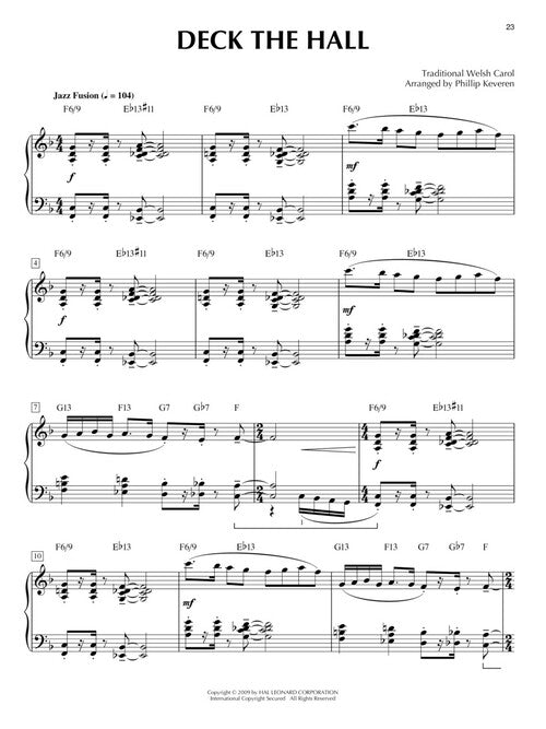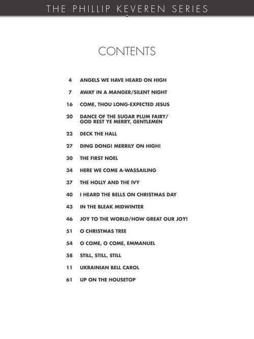 Jazz up your Christmas festivities with over 20 songs masterfully arranged by Phillip Keveren for solo piano. For the first time in his series, access is included to online stunning recordings of Phillip performing each selection! Includes: Angels We Have Heard on High · Carol of the Bells · Deck the Hall · The First Noel · Here We Come A-Wassailing · The Holly and the Ivy · In the Bleak Midwinter · O Christmas Tree · Up on the Housetop · and more.