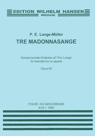 P.E. Lange-Muller: Tre Madonna Sange Op.65 Music Sales America P.E. Lange-Muller: Tre Madonna Sange Op.65 Publisher: Music Sales America Category: Keyboard & Piano/Vocal/Guitar Series: Music Sales America Format: Paperback For SATB Choir (Mixed Voices). Inventory #...Regular price $11.99 -