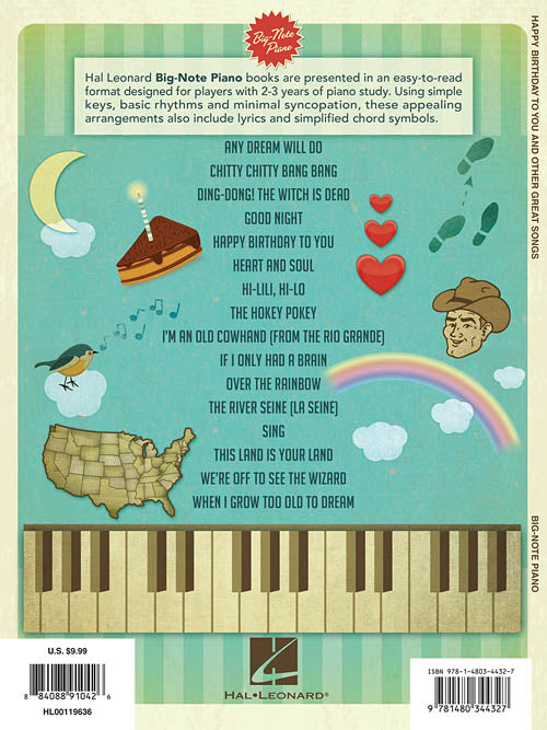 Composer: Various Happy Birthday to You and Other Great Songs for Big-Note Piano Softcover 16 essential favorites arranged for beginners, including: Any Dream Will Do · Chitty Chitty Bang Bang · Good Night · Happy Birthday...Regular price $11.99 -
