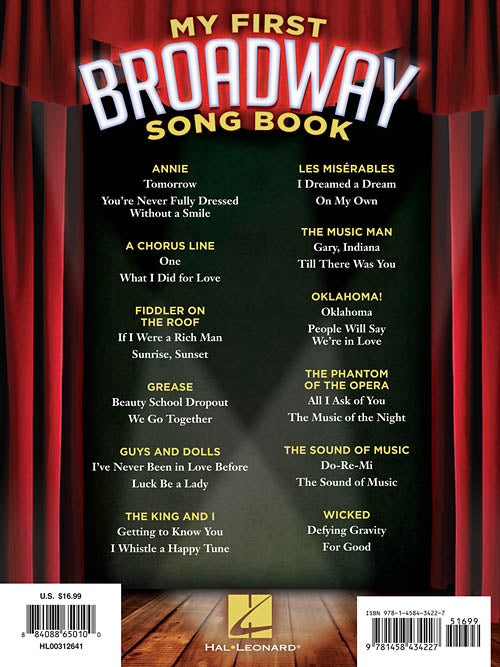My First Broadway Song Book A Treasury of Favorite Songs to Play Publisher: Hal Leonard Category: Keyboard & Piano/Vocal/Guitar Series: Easy Piano Songbook Format: Softcover This deluxe collection features easy piano arrangements of 24 favorites from...Regular price $21.99 -