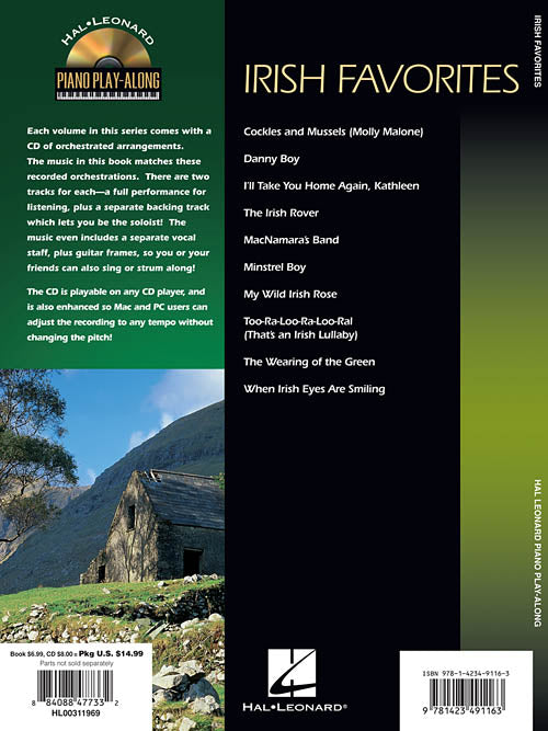 Irish Favorites Piano Play-Along Volume 90 Publisher: Hal Leonard Category: Keyboard & Piano/Vocal/Guitar Series: Piano Play-Along Format: Softcover with CD Your favorite sheet music will come to life with the innovative Piano Play-Along series! With these...Regular price $17.99 -