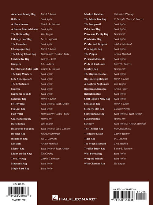 The Big Book of Ragtime Piano Publisher: Hal Leonard Category: Keyboard & Piano/Vocal/Guitar Series: Piano Solo Songbook Format: Softcover A great collection of more than 60 classic ragtime solos, including: American Beauty Rag · Bethena ·...Regular price $29.99 -