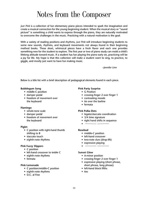 Just Pink Nine Pieces For Piano Solo Hal Leonard Student Library Composer Show